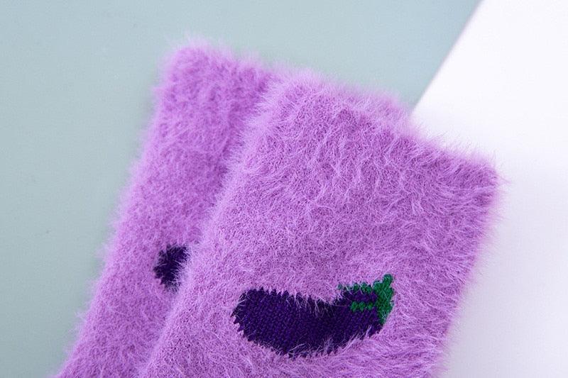 1 pairs Thermal Fluffy Socks Autumn-Winter New Year Socks New Fashion Warm Avocado Cherry Eggplant Socks Warm Ankle Socks Winter Socks For Men And Women