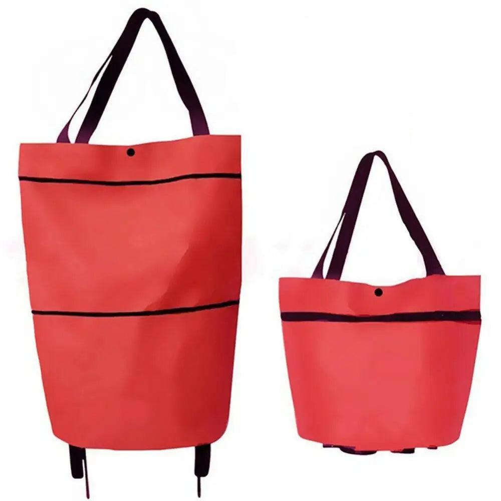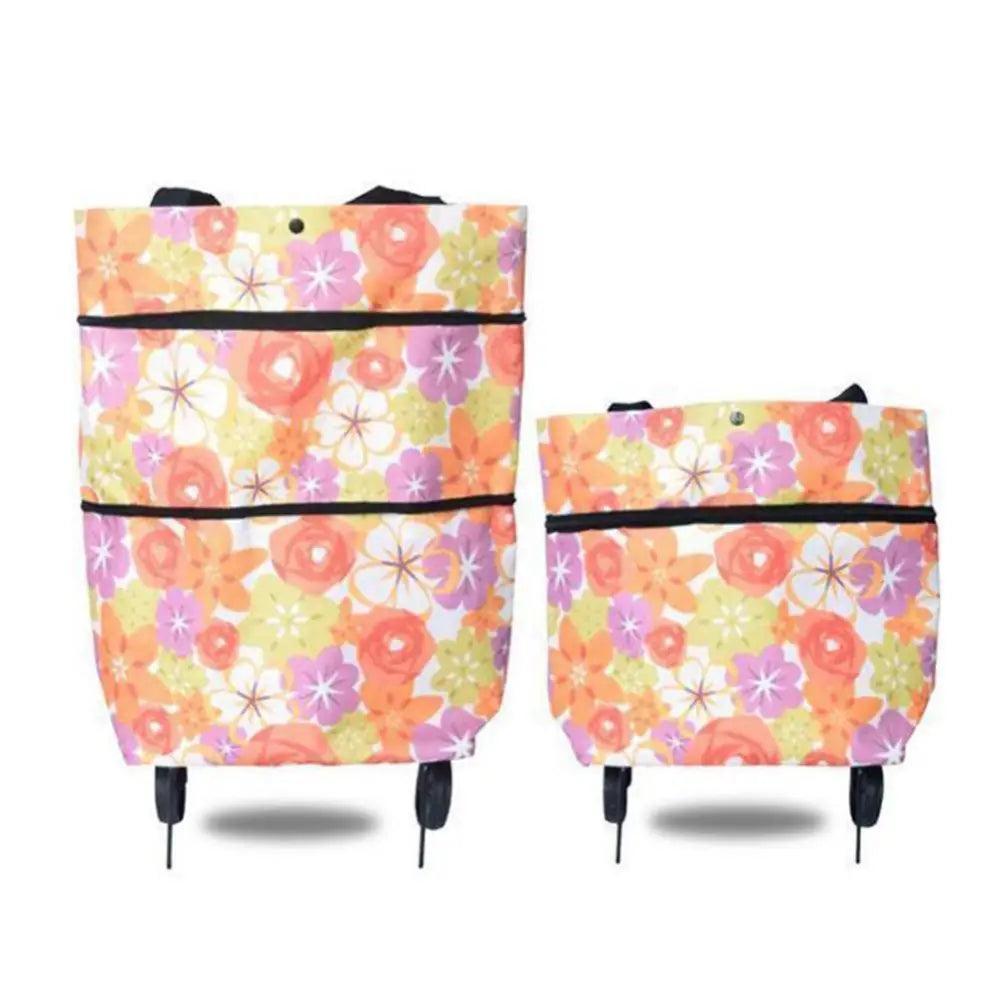 New Folding Shopping Food Bag On Wheels Vegetables Organizer Portable Reusable Colorful Bag Unigue Design