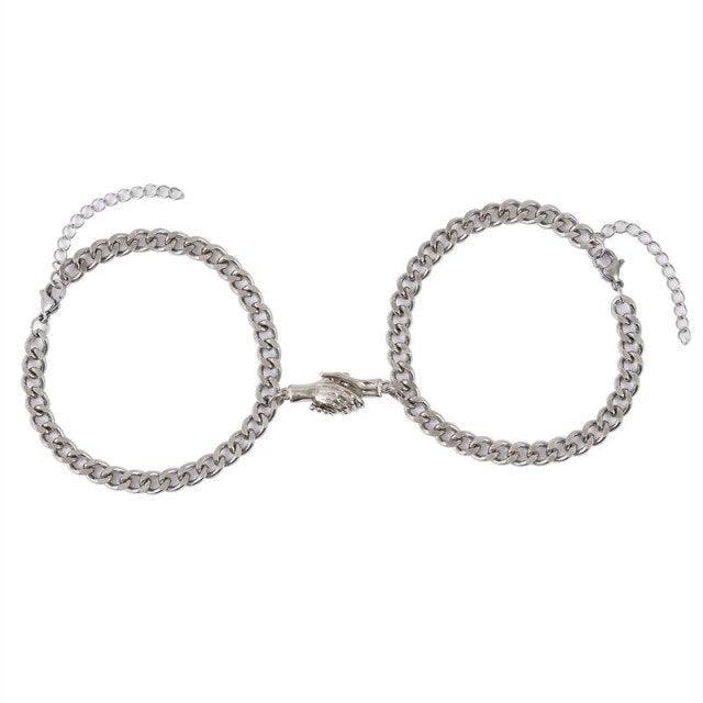 Elegant Magnet Couple Bracelets Handshake Attraction Bracelet Stainless Steel Relationship Matching Bracelet For Men Women Magnet Charm Stainless Steel Charm Jewelry Gifts