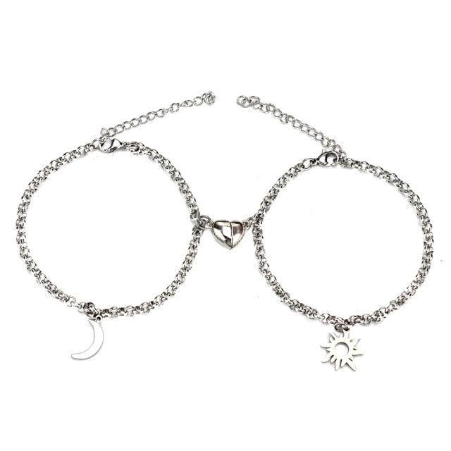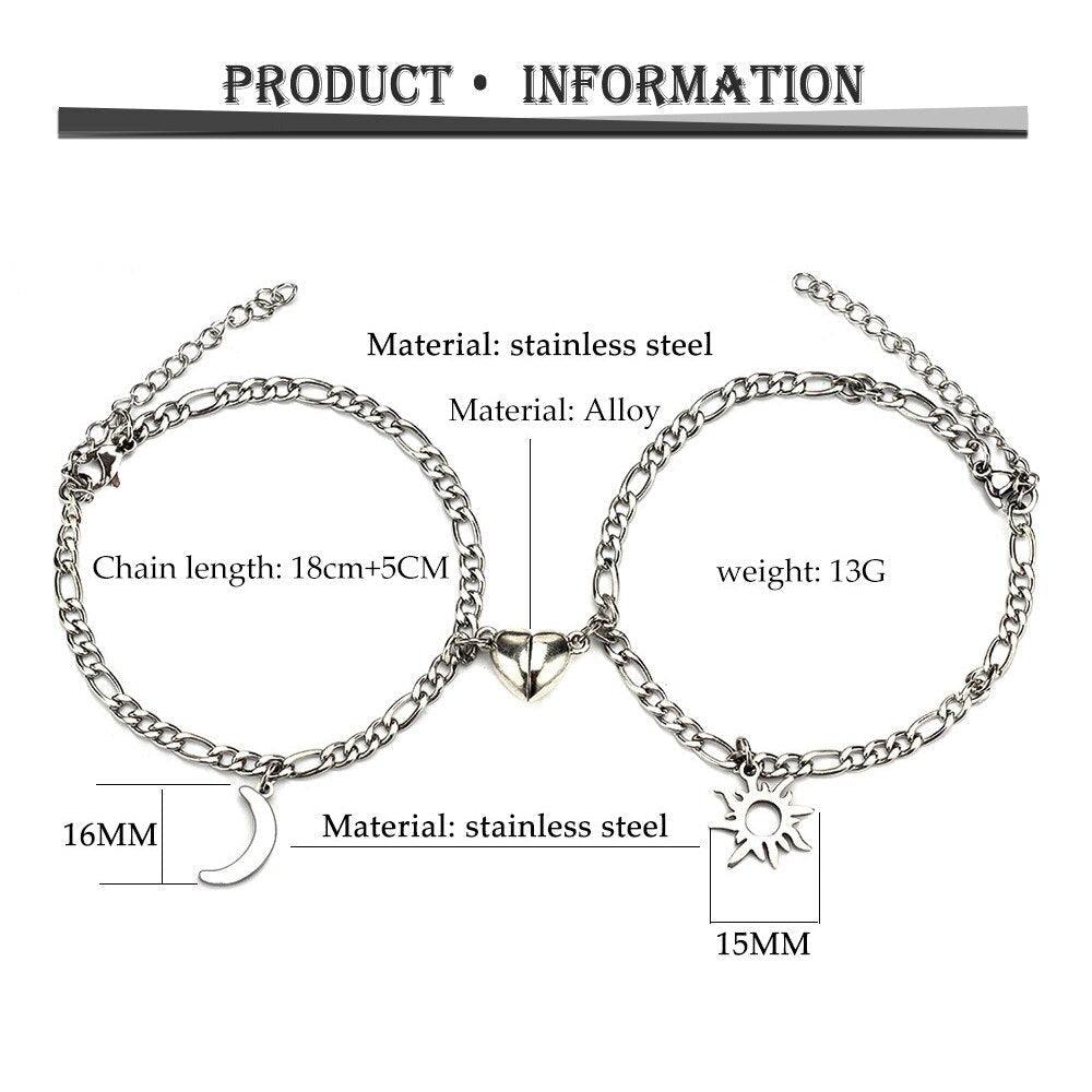 2pcs/set Stainless Steel Sun Moon Couple Bracelets Magnet Attraction Love Heart Shaped Charms Couples Bracelet Stainless Steel Chain Bracelets Charm Jewelry Matching Couple Bracelets