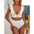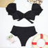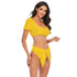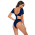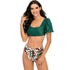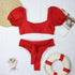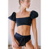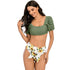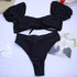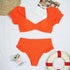 Bikini New 2 Piece Women Swimsuit Women's High Waist Bikini Set Fashion Puff Sleeve Swimwear Set Bathing Suits Solid Color Short Puff Sleeve Summer High Waist Cut Backless Bathing Suit Beachwear