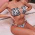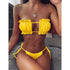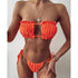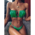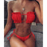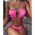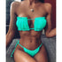 Bikini Pleated Swimsuit Female Swimwear Women's Ruffle Tie Side Bikini Set High Cut Strapless Padded Solid Bathing Suit Women Mini Thong Bikini Set Bather Swimming Beachwear For Bathing Suit