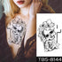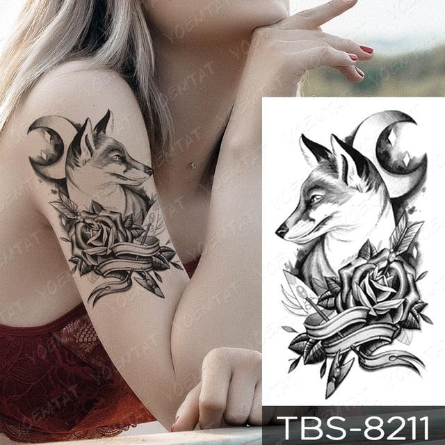 Black Sketchs Flowers Waterproof Temporary Tattoo Sticker Chest Flash Tattoo Wolf Diamond Flower Body Art Arm Fake Tattoo For Womens Men