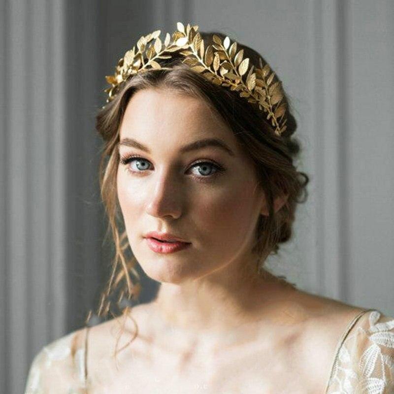 Bridal Hair Comb Greek Roman Goddess Olive Leaf Branch Headband Crown Headdress Bride Wedding Headband Jewelry Goddess Headband Metallic Gold Leaf Branch Crown Hair Band Wedding Tiara Hair Accessories