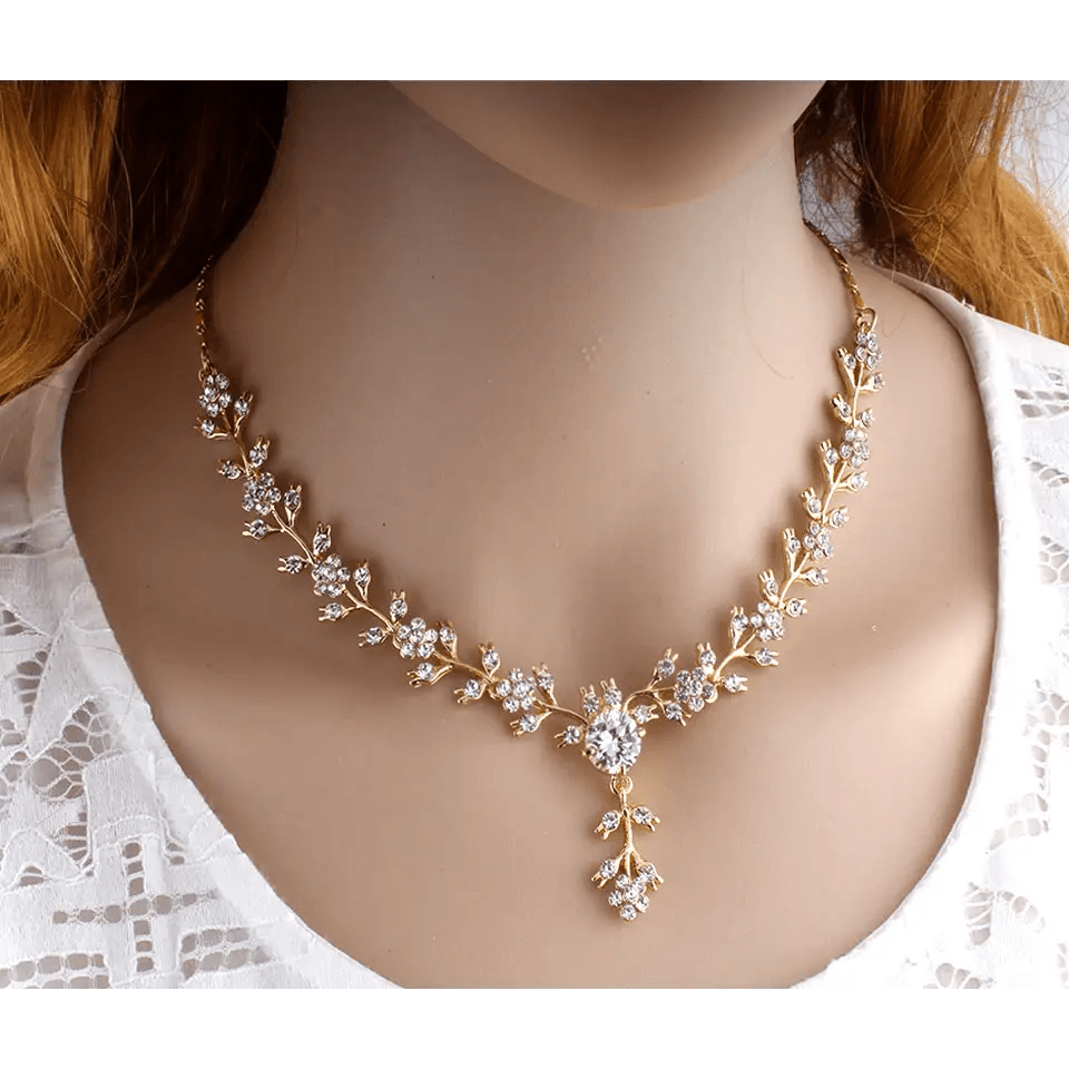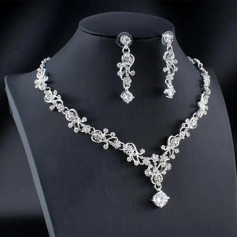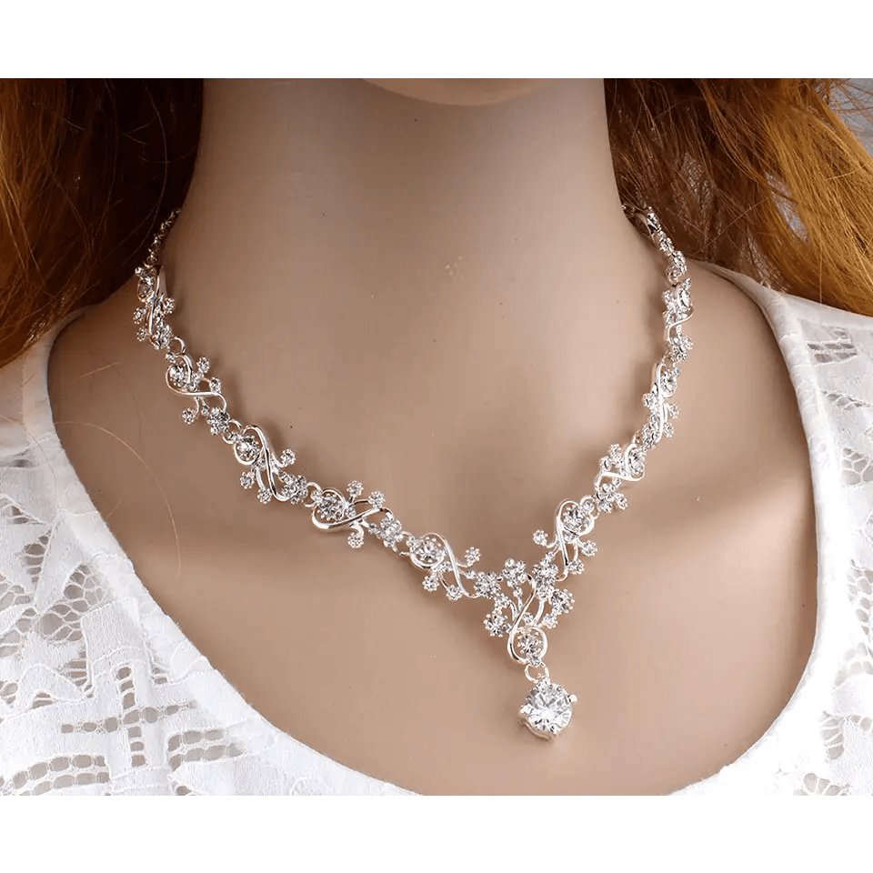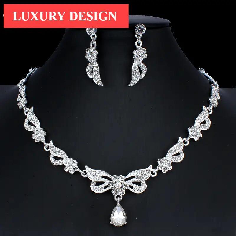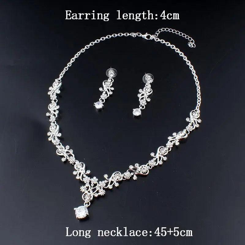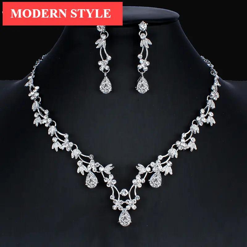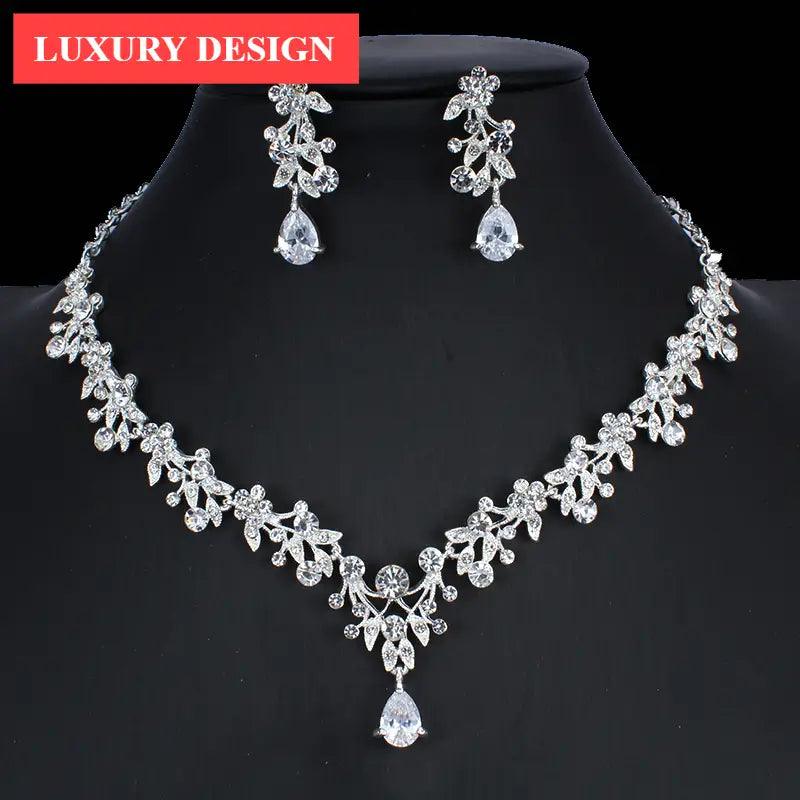 Modern Luxury Women's Wedding Jewelry Set In Modern Gold Silver Color Style Necklace & Earrings Accessory Gift