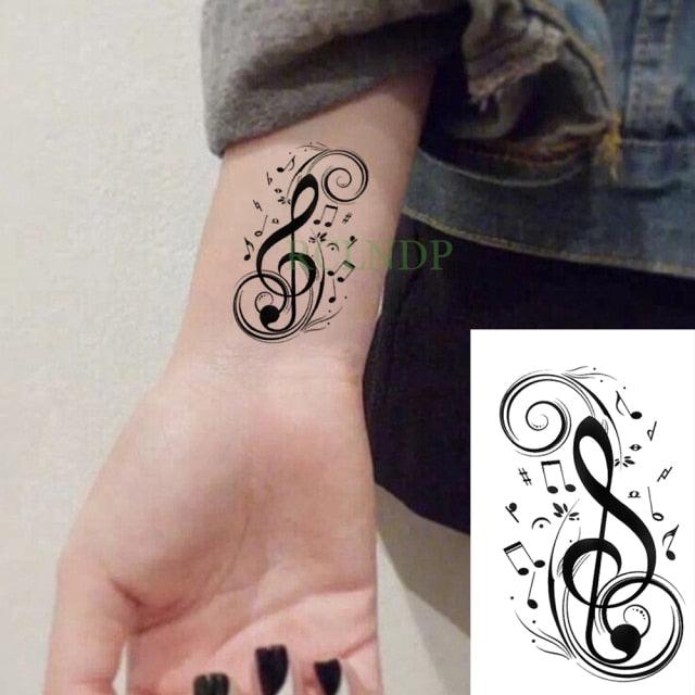 Elegant Black Music Notes Waterproof Sticker Tattoos Temporary Chest Shoulder Tattoos For Men Women