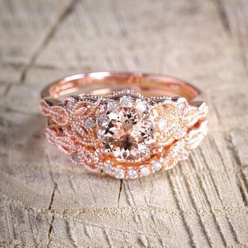 Luxury New Crystal Two-piece Zircon engagement ring Rose Gold Color Zircon Jewelry For Woman