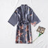 Fashion Blue Floral Bird Print Stylish Bathrobes Modern Comfortable Design Silk Soft Sleepwear For Women
