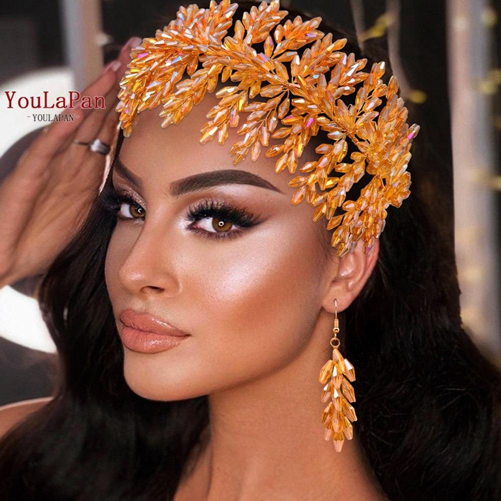 Ladies Wedding Crown Bridal Crowns For Brides Hair Accessories Metal Crystal Bridal Hair Band Wedding Tiara Wedding Headband Earring Set Bridal Hair Pieces Rhinestone Pearl Hair Accessories Jewelry