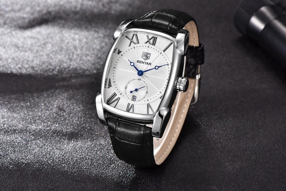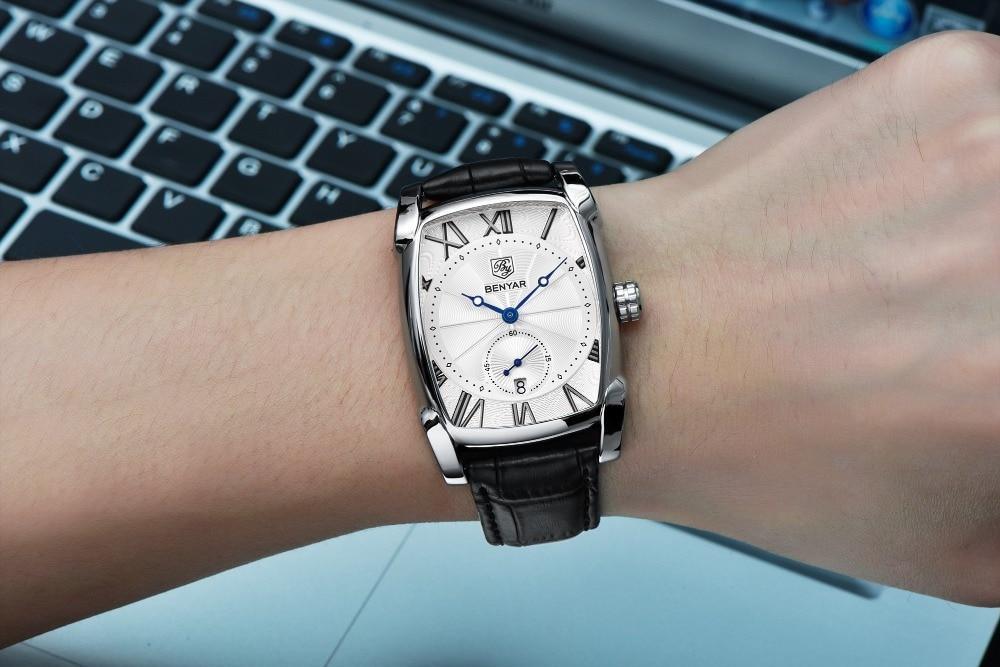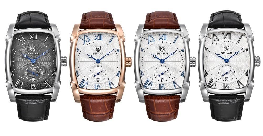 • FASHION AND CASUAL: Special dial design with rectangle case. A good companion for you. Elegant leather band strap, bring you classic and simplicity fashion.