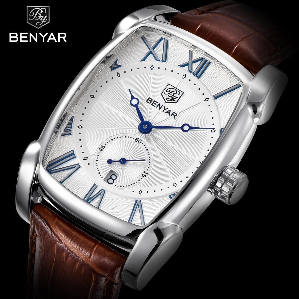 Luxury Business Men's Watches Brown Casual Wrist Leather Strap Waterproof Classic Rectangle Square Watch