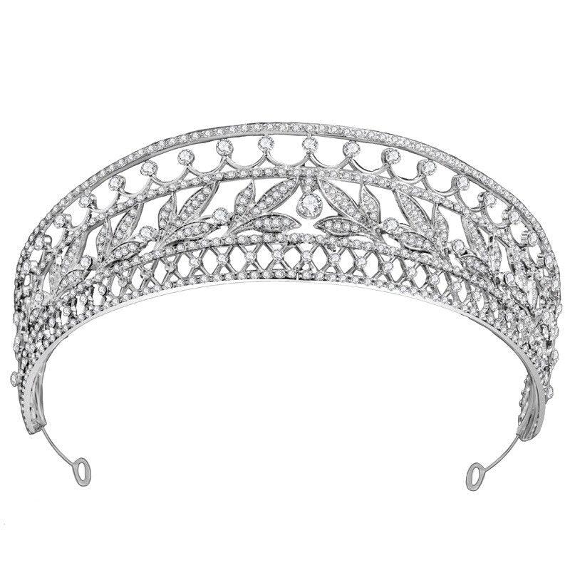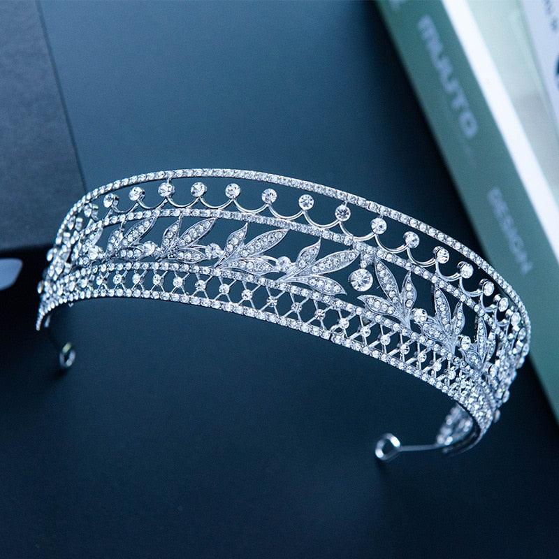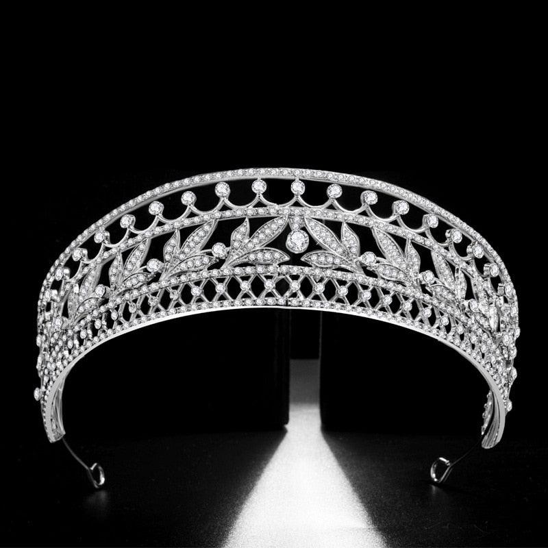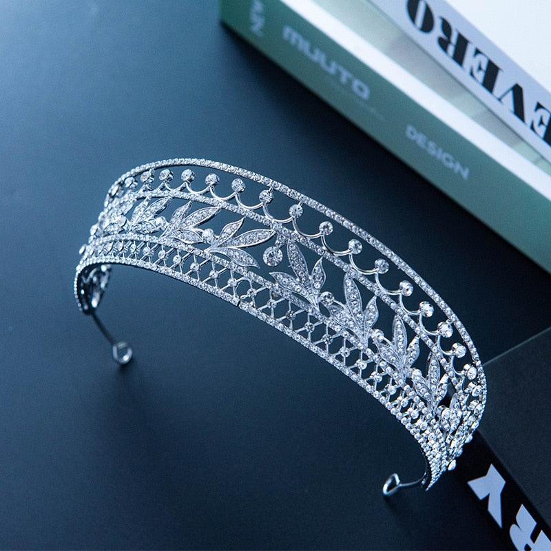 Luxury Cubic Zircon Crown Crystal Leaf Bridal Tiaras Crowns Rhinestone Pageant Bride Headband Wedding Hair Accessories Cubic Zircon Wedding Crown Geometric Rhinestone Crystal Queen Crowns