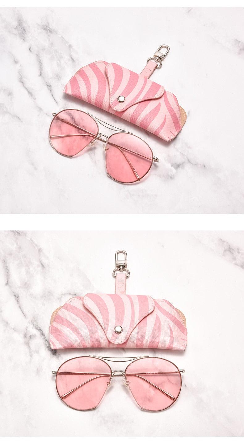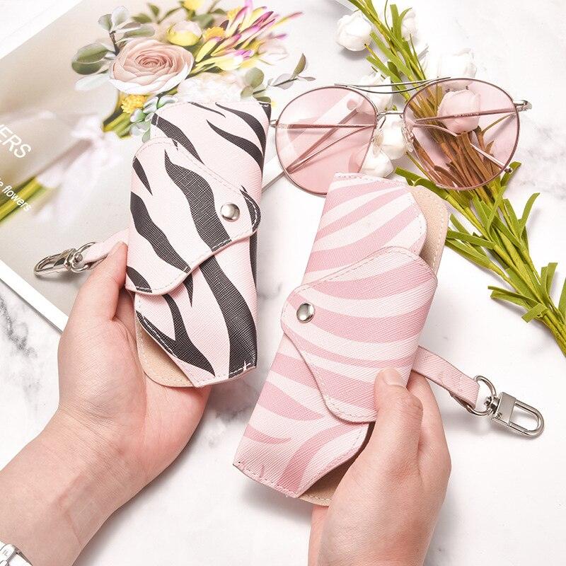 Luxury Glasses Bag Women Portable Storage Bag Simple Anti-Pressure Protective Cover Sun Sunglasses Bag Pouch PU Leather Button Hard Glasses Holders Eyewear Pouch For Women