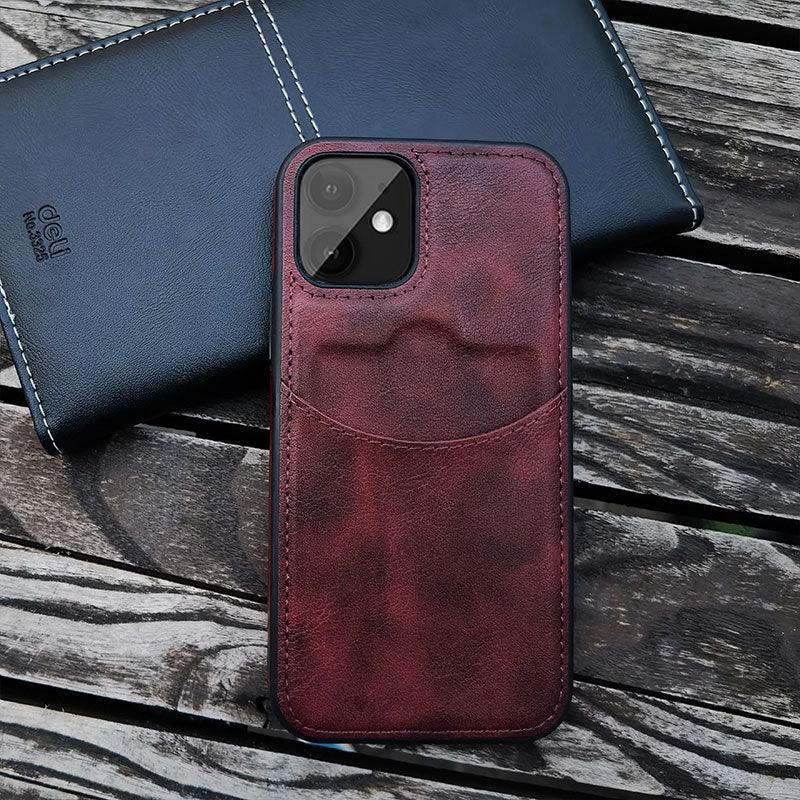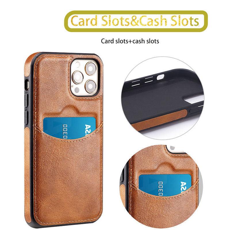 Luxury Leather Card Retro Case for iPhone 14 13 12 Mini 11 Pro Max X XR XS Slim Soft Cover for 14 Max Built-in Metal Plate for Magnetic Mounting & Card Holder Phone Case