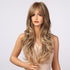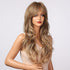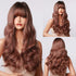 New Fashion Long Wavy Ombre Brown Highlight Wigs with Bangs Synthetic Natural Wig for Women Heat Resistant Cosplay Hair Wigs For Black Women Wigs For Cosplay