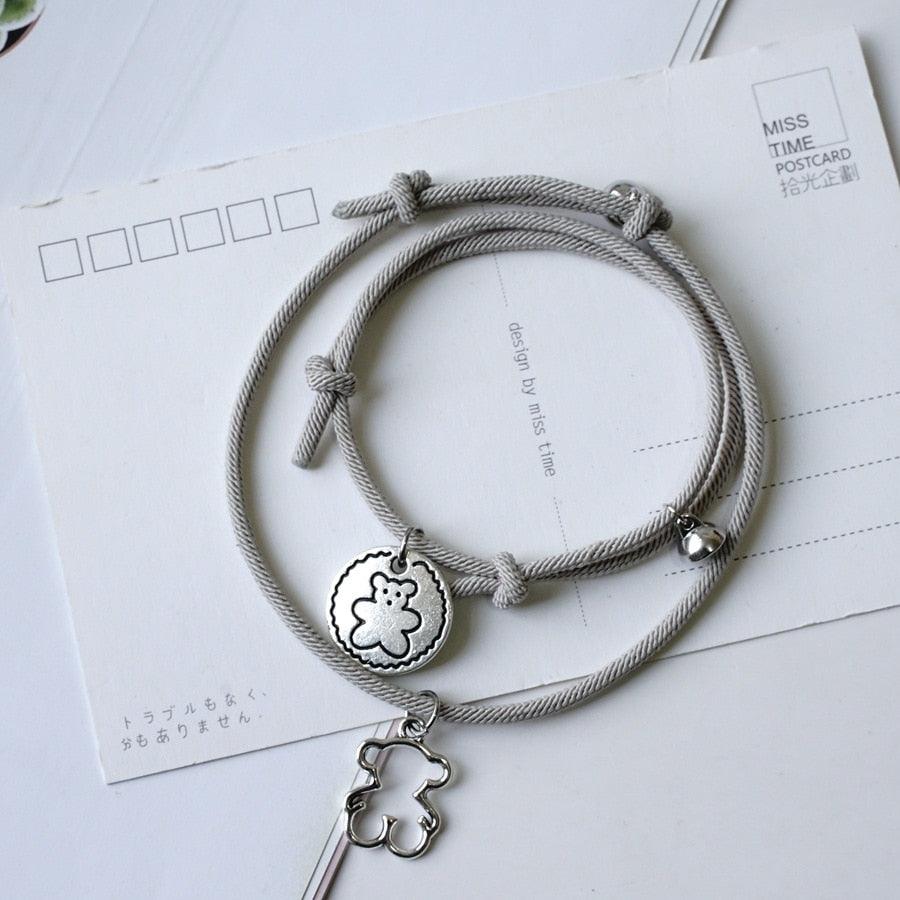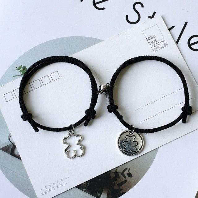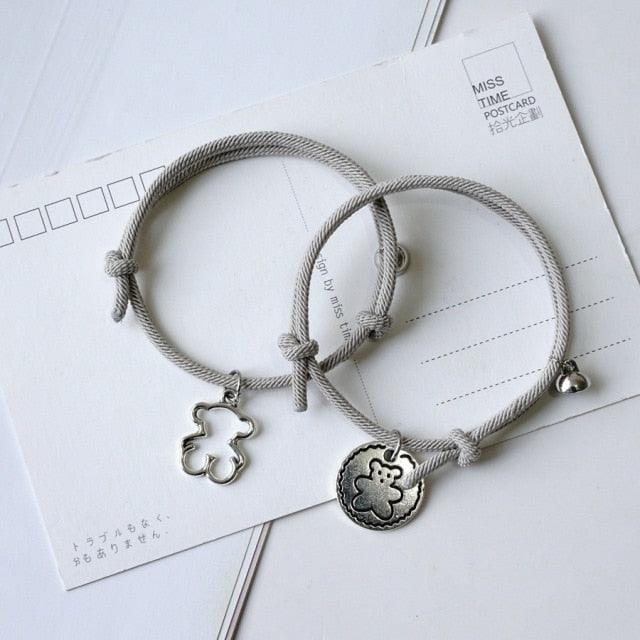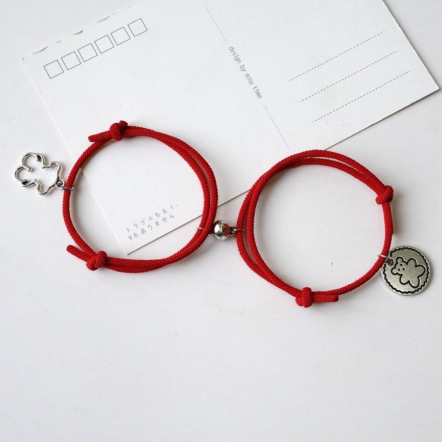 New Rope Bear Couple Bracelet Magnetic Hand Rope Charm Bracelets Unisex Classic Cotton Attraction Couple Bracelet Distance Cute Bear Couple Bracelet Adjustable Magnetic Love Bracelet