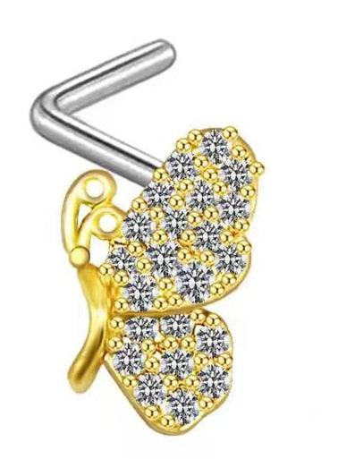 Piercing Jewelry CZ Nose Rings For Nose Piercing Stainless Steel Nose Screw Nose Rings Studs Surgical Steel Nose Nostril For Women Butterfly Nose Studs L-Bend Nose Jewelry Stainless Steel Nose Rings L Shape Bone Screw Nose Studs for Women Men