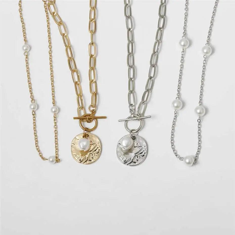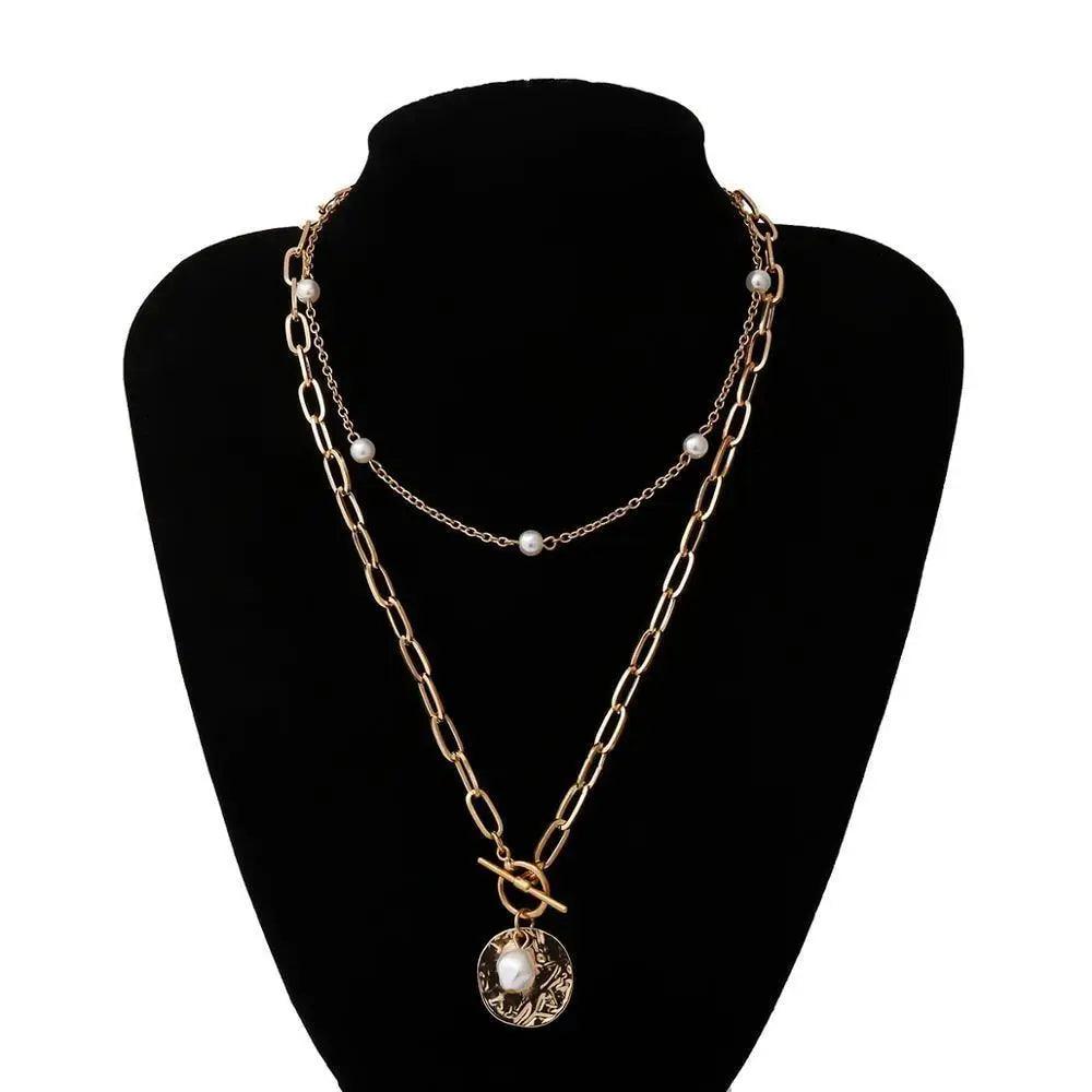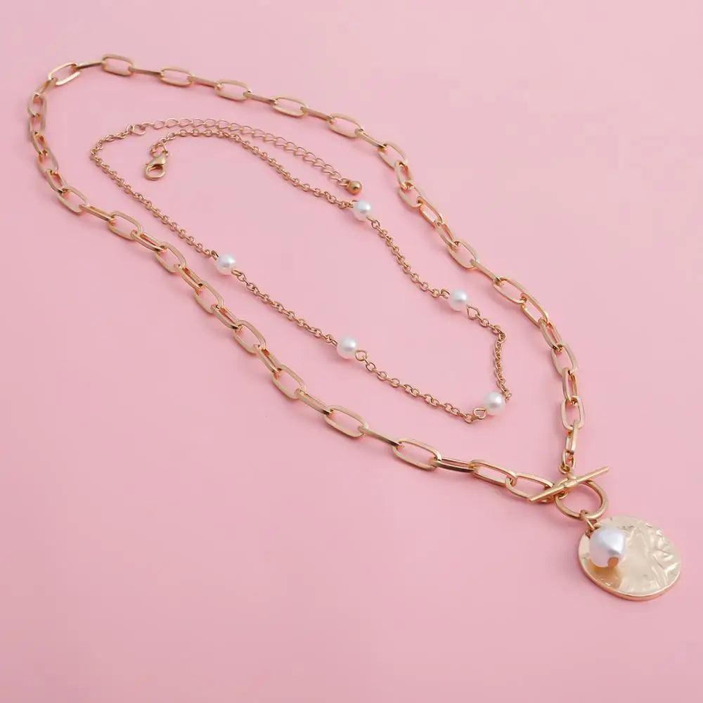 Sparkling Pearl Coin Pendant And Choker Necklace for Women And Girls Wedding Gold Color Long Chain Necklace Jewelry Gift