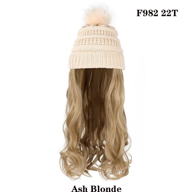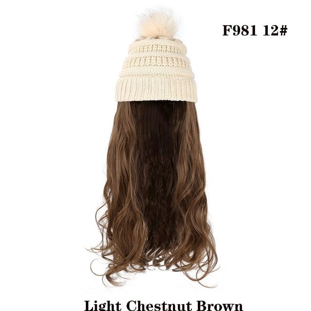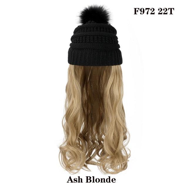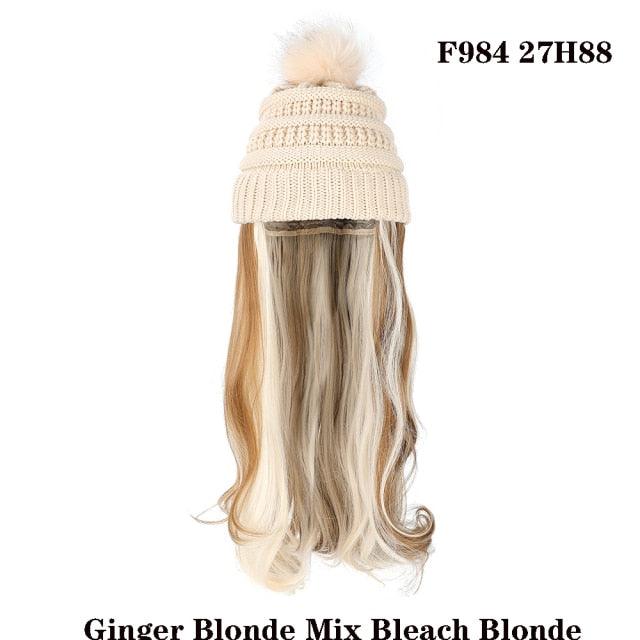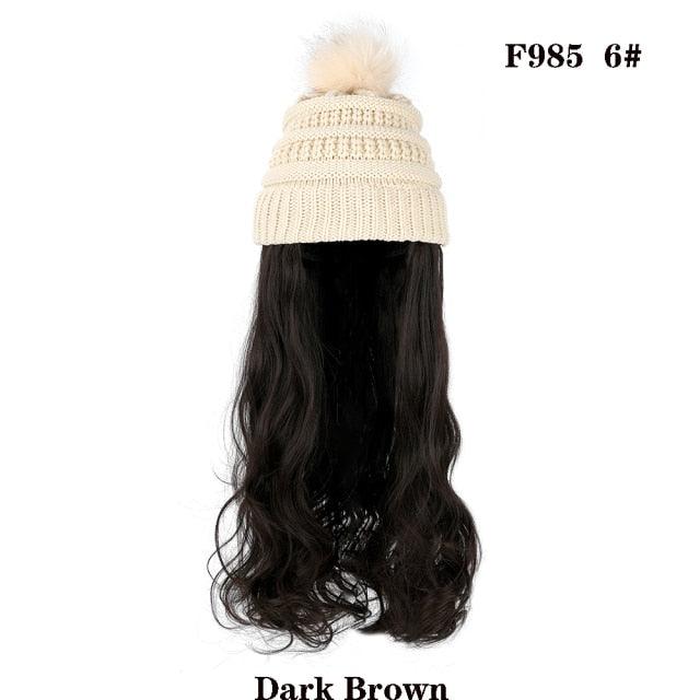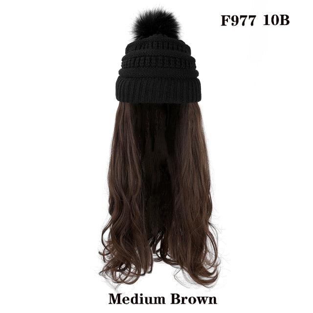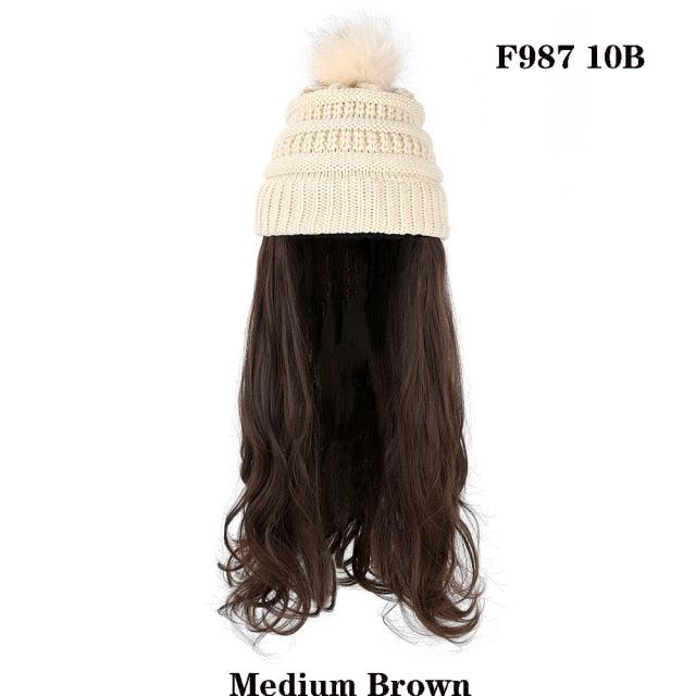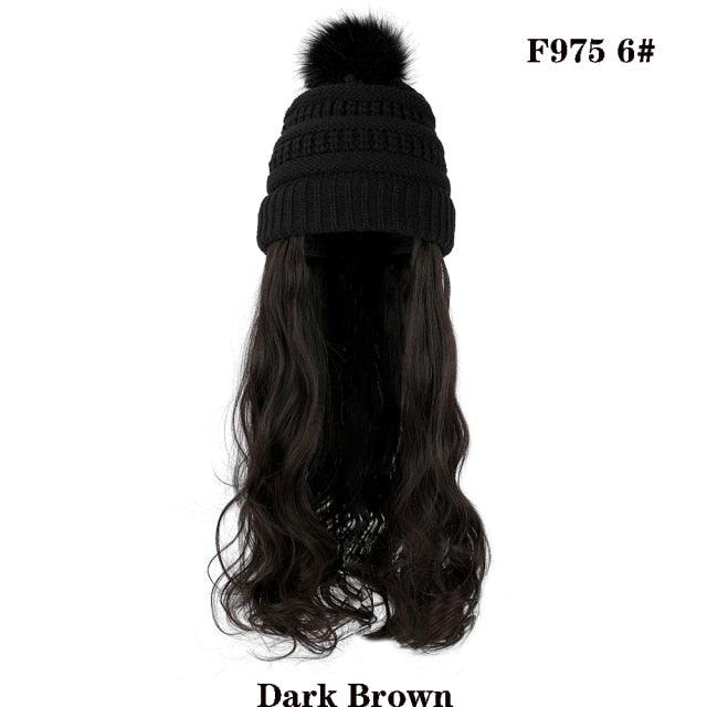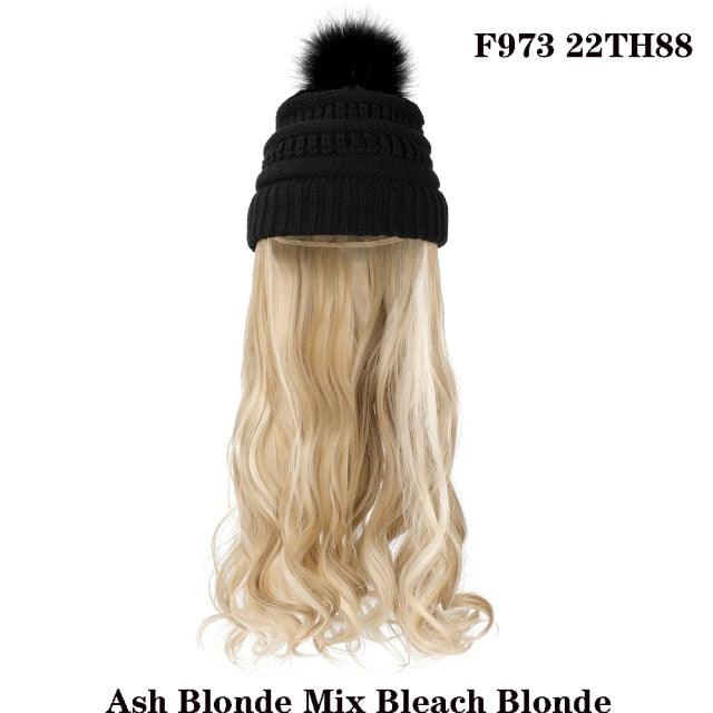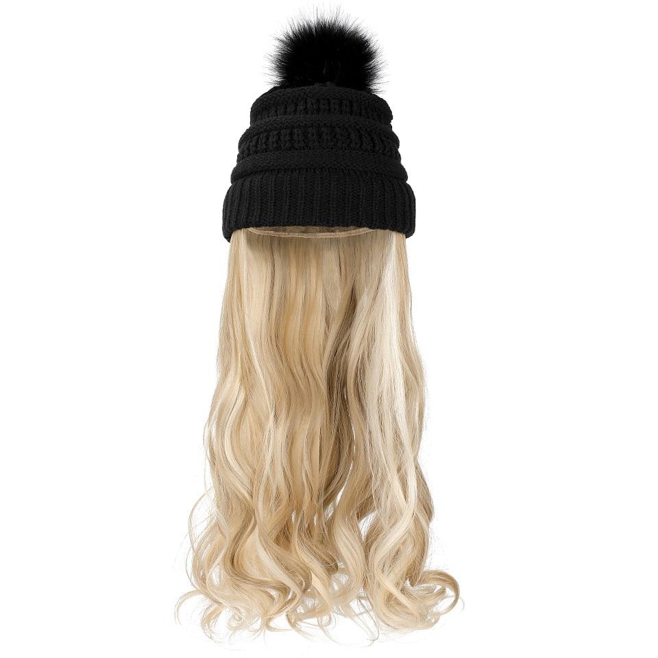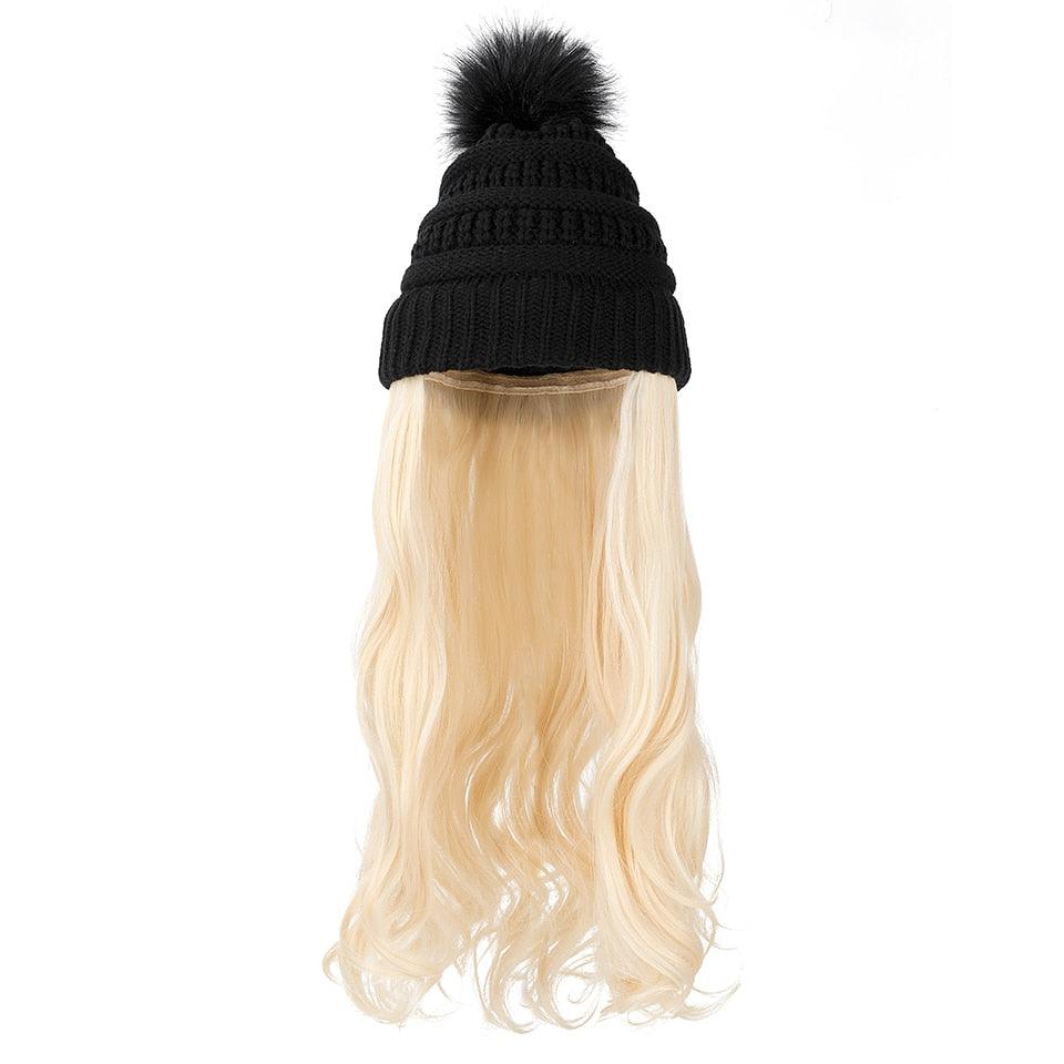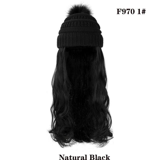 Trendy Hat Wig Synthetic Long Wavy Wigs with Beret Hat Knitted Fashion black Autumn Winter Cap Hair Extensions Wigs For Black Women Cosplay Wigs For Women
