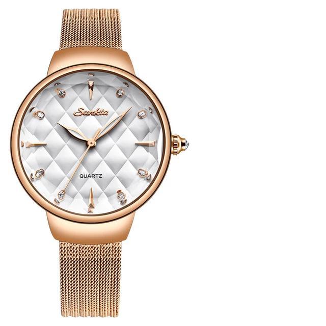 • JAPAN QUALITY: The ladies' embossed watch is made with Japan Imported Movement and high quality battery,the case is stainless steel,make the watch is very durable and keep accurate time running.The watch mesh band made by smooth stainless steel ,make it very comfortable to wear.